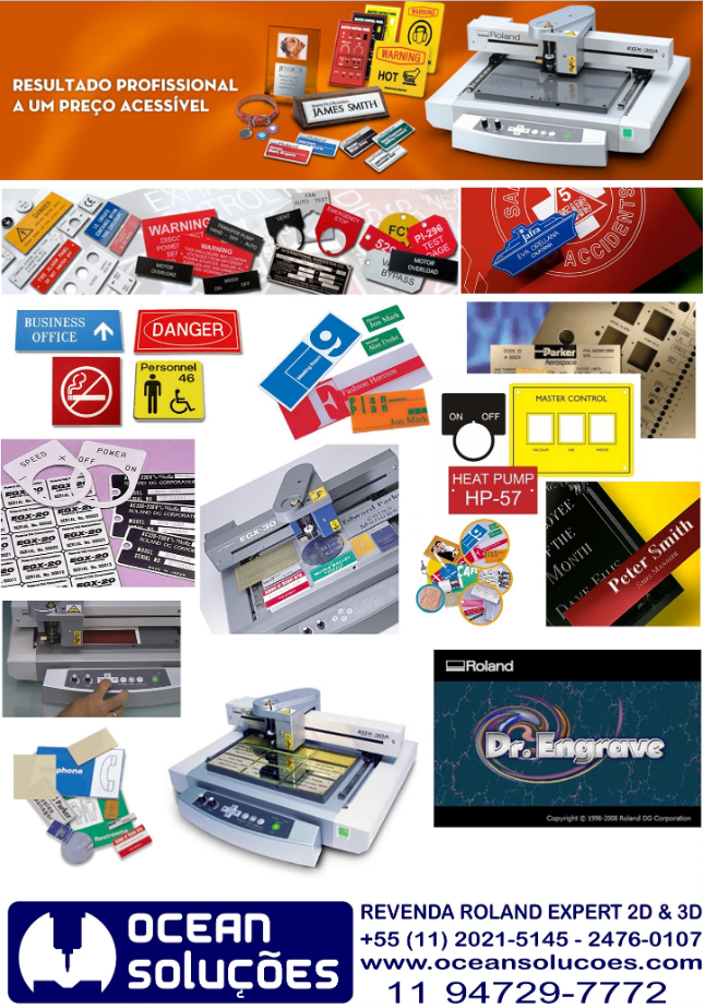 Itens inclusos: Cabo de energia: 1, Mangueira e ducto coletor de resíduos: 1, Cortadora para gravação: 1, Suporte de ferramenta de gravação: 1, Adaptador de cortadora de diamante: 1, Chave de fenda sextavada: 1, Chave inglesa: 1, Chave sextavada: 1, Material de teste: 1, Folha de adesivo para fixar o material: 1, CD-ROM do pacote de programas da ROLAND: 1, Manual do Usuário: 1